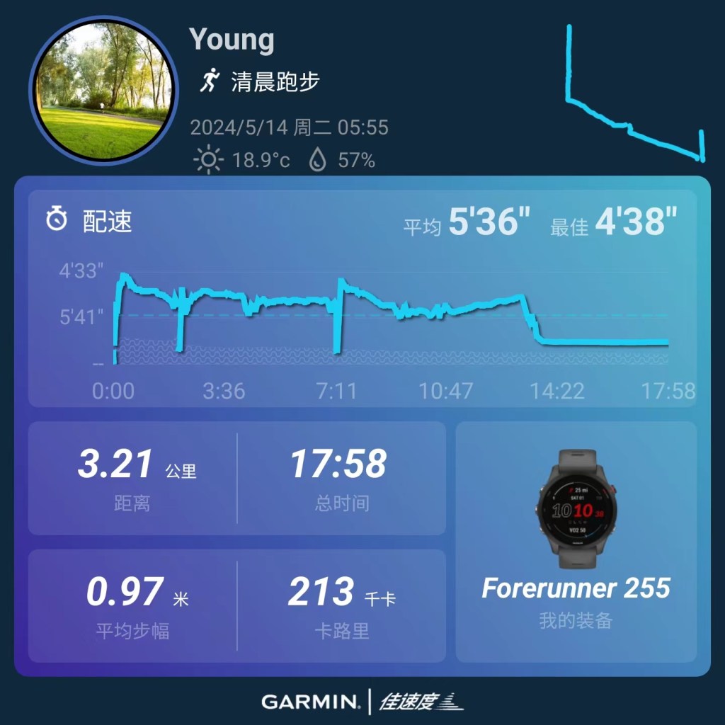 2024-05-14:5分配左右8公里,最近低强度慢跑太多,这个配速跑的有点少!