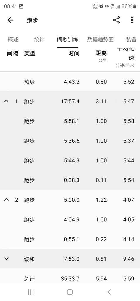 新鞋试穿,没敢用全力,大概用了九成力吧,计时赛5分钟1.22公里,1公里新记录4.04,前脚掌着地,推进力澎湃,开始担心不好驾驭,5分配还行,4分配助力明显👍👍